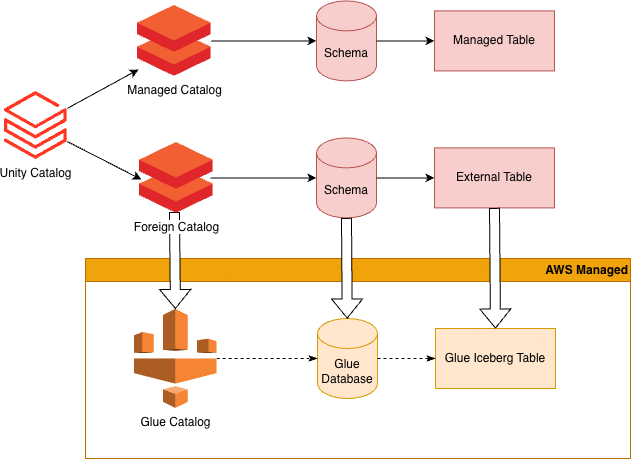 This provides read-only access to your Glue Iceberg tables from any Iceberg client using Databricks as your Iceberg Catalog API. Databricks Unity Catalog foreign catalogs gives you a single unified service where you can manage access permissions to all of your data.